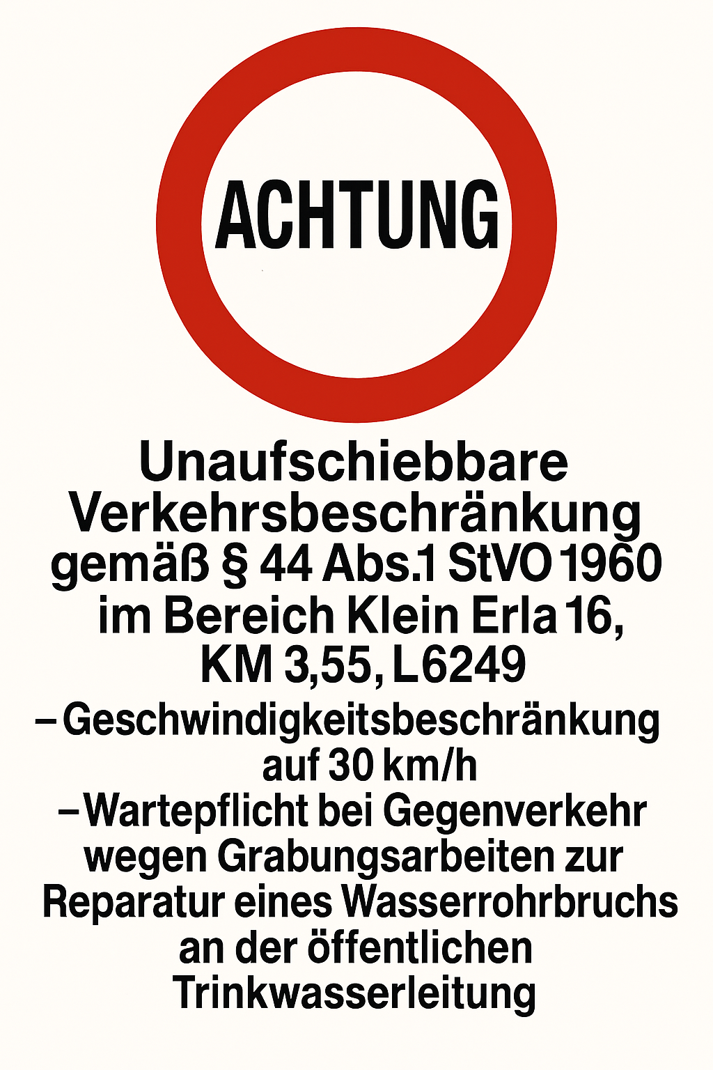 ACHTUNG Verkehrsbeschränkung Klein Erla