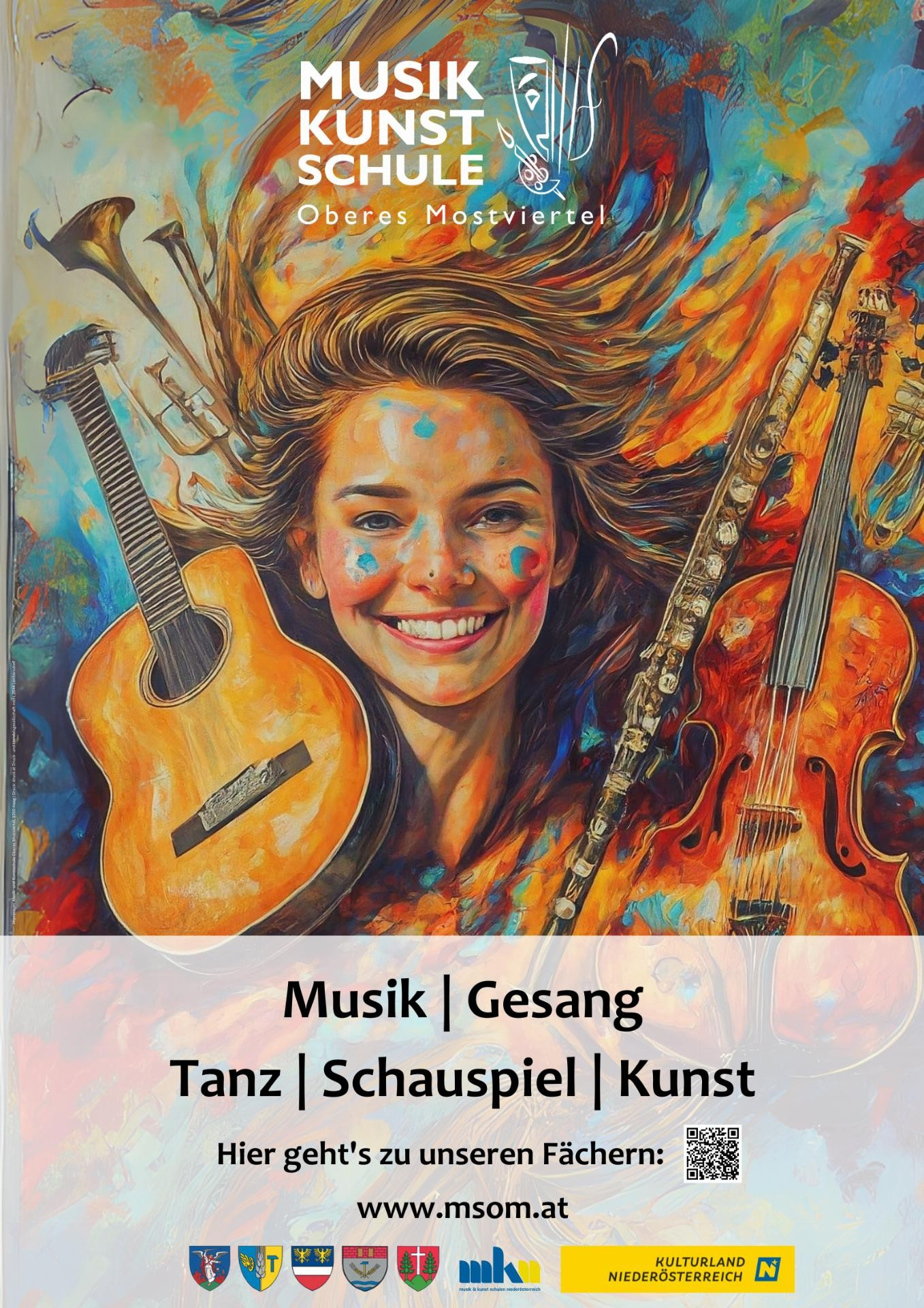 Die Musik- und Kunstschule Oberes Mostviertel mit Standorten in Haag, St. Valentin, Ennsdorf, St. Pantaleon-Erla und Strengberg lädt am Freitag, dem 25. April 2025, von 15 bis 19 Uhr zum Schnuppertag in die Musikschule in Haag ein. Interessierte haben die Gelegenheit, Musikfächer auszuprobieren. Von Gesang, Klavier, Violine, Gitarre und Blockflöte bis zu Fagott, Oboe, Cembalo, Orgel, Kontrabass und Hackbrett ist für alle etwas dabei. Für ganz kleine Musikfans, Tanz, Schauspiel und die Kunstfächer Töpfern, Malerei & Zeichnung, Bildhauerei, Film und Musikproduktion bietet die Musik- und Kunstschule eigene Schnuppertermine an.
